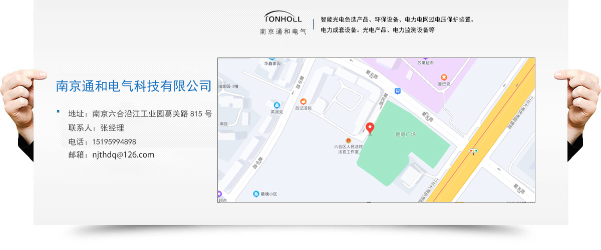 南京通和電氣科技有限公司是致力于研發(fā)、 生產(chǎn)防雷產(chǎn)品的科技型企業(yè)。公司集研發(fā)、生產(chǎn)、銷售、服務(wù)為一體,目前主要產(chǎn)品為:智能光電色選產(chǎn)品、環(huán)保設(shè)備、電力電網(wǎng)過(guò)電壓保護(hù)裝置。電力成套設(shè)備。光電產(chǎn)品、電力監(jiān)測(cè)設(shè)備等。公司秉承“誠(chéng)信。創(chuàng)新、和諧。卓越”的經(jīng)營(yíng)理念,研發(fā)創(chuàng)新的專業(yè)態(tài)度服務(wù)客戶,追求卓越,以其高水準(zhǔn)的產(chǎn)品品質(zhì)和良好的企業(yè)信譽(yù),在發(fā)展進(jìn)程中得到了社會(huì)廣泛認(rèn)可。
